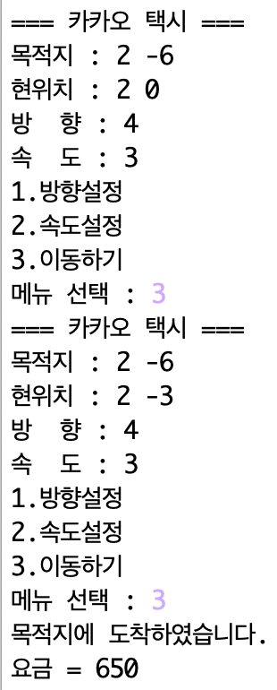 4. 거리 2칸 당 50원씩 추가되어 요금도 출력한다.