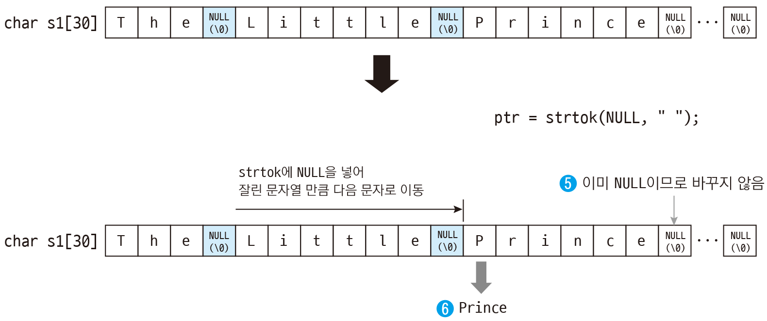ㄴ 구분자를 발견하면 "\0" 끝처리 문자로 대치함